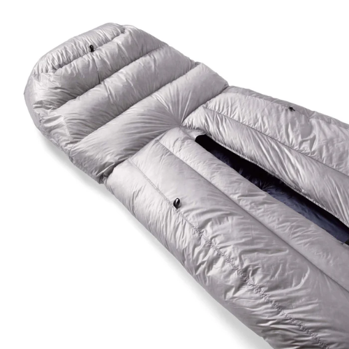- Four sewn-in loops and two attachment straps secure a sleeping pad. keeping the quilt close on cold nights