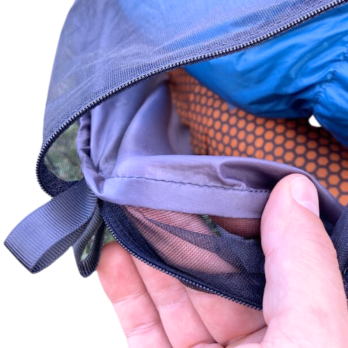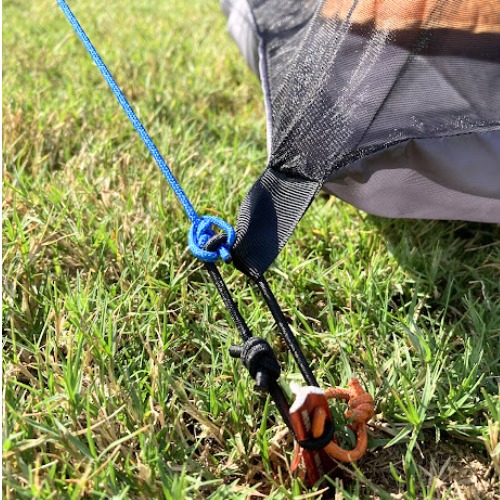 Grosgrain tie-outs sewn at each corner allow the bivy to easily be clipped into the ANDA tarp tie-outs. or staked to the ground in windy conditions