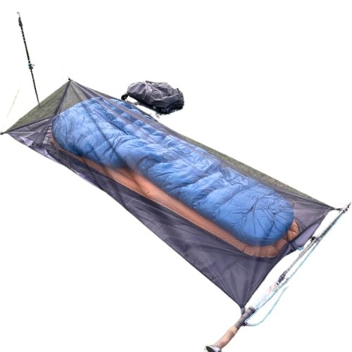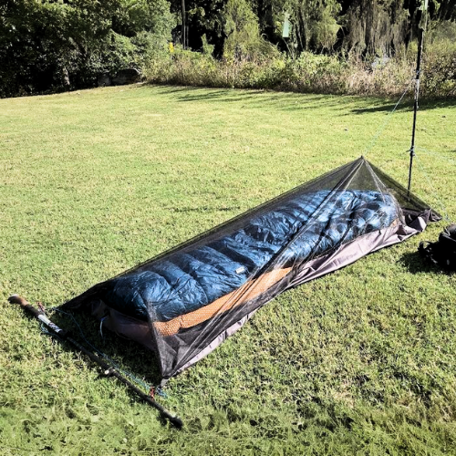 Feel the breeze and see the stars without bugs and dirty ground to step up your cowboy camping experience. Just like the Burrito Bivy. a waterproof bottom fabric keeps you and your sleep system dry while noseeum bug mesh provide maximum ventilation.