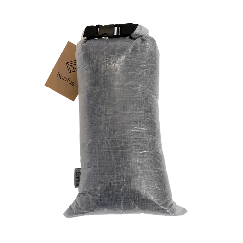 Note: Bonfus' dry bags will keep your gear dry in normal backpacking conditions. Not intended for more extreme applications. like underwater use.