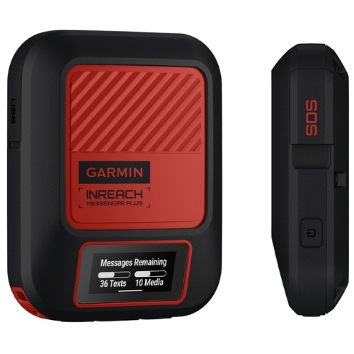 The inReach® Messenger Plus SOS satellite communicator helps you keep in touch with friends and family beyond cell service. Connect your compatible smartphone and tell them you miss them — or show them the view with voice recordings. photos. and group messaging on the Garmin Messenger™ app with an active subscription.