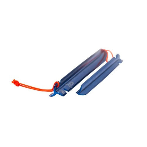 These Sonic Stakes have a Y-Beam shape which gives them great holding power in a small package. The three-sided design also gives them good bend resistance for an ultralight stake. The price of aluminum beats titanium or carbon.
